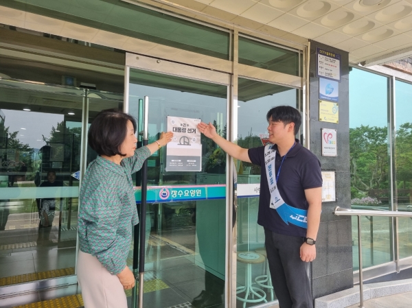 또한 ‘투표는 권리이자 민주주의의 꽃’ 이라는 문구가 적힌 투표 독려 현수막을 청사 및 읍·면 행정복지센터, 게시대, 육교 등 41개소에 게첨하고 유관기관을 직접 방문해 포스터를 부착하는 등 투표 독려를 위한 현장 중심의 홍보 활동을 전개하고 있다.