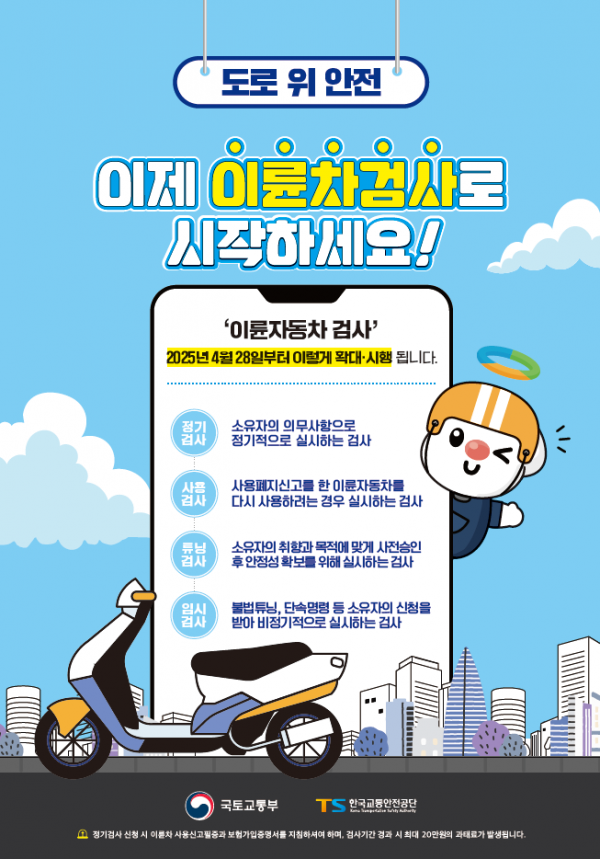 정기검사 제도 대상은 △대형 이륜자동차 △2018년 이후에 제작된 중·소형 이륜자동차 △2025년 4월 28일 이후 제작 및 신고된 전기 대형 이륜자동차 등이다.