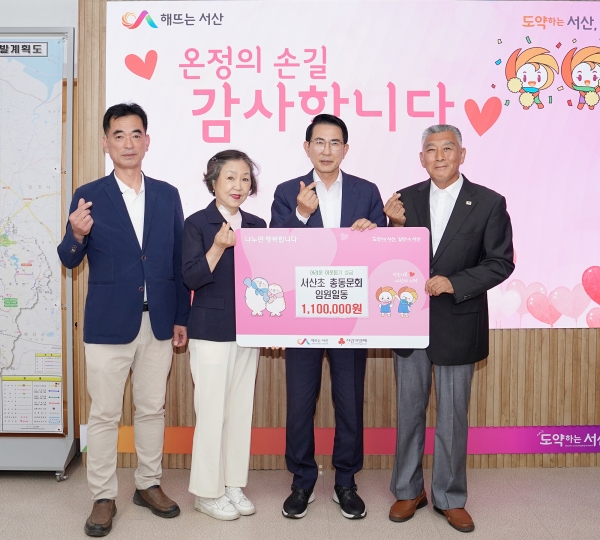 시에 따르면, 이날 기탁된 성금은 서산초등학교 동문회 임원 40명이 이웃을 위해 모은 것으로 알려졌다.