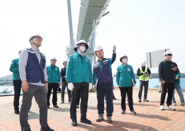 이날 군은 남면 드르니항 인근에 위치한 260m 길이의 대하랑꽃게랑교에서 현장 브리핑을 실시한 뒤 관계자들과 함께 △균열 여부 △구조부 탈락 여부 △포장면 상태 △전기분야 이상 여부 △주교각 및 하부면 부식 여부 등을 면밀히 살폈다.