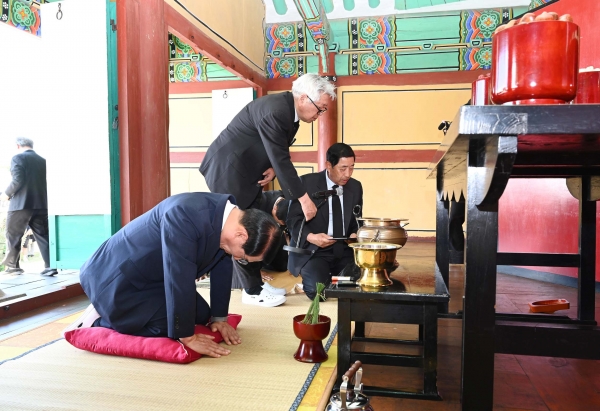 행사는 제향선언을 시작으로 전통 단배 형식의 제례가 엄숙하게 진행되며 이어 헌화와 분향 순서가 이어진다.