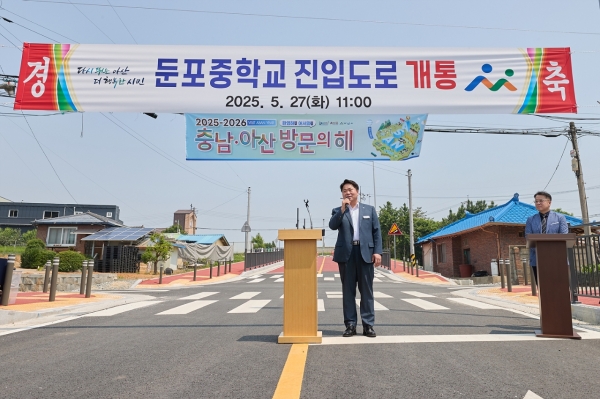아산시, 둔포중학교 진입도로 개통. 둔포 지역 교통 편익 증진