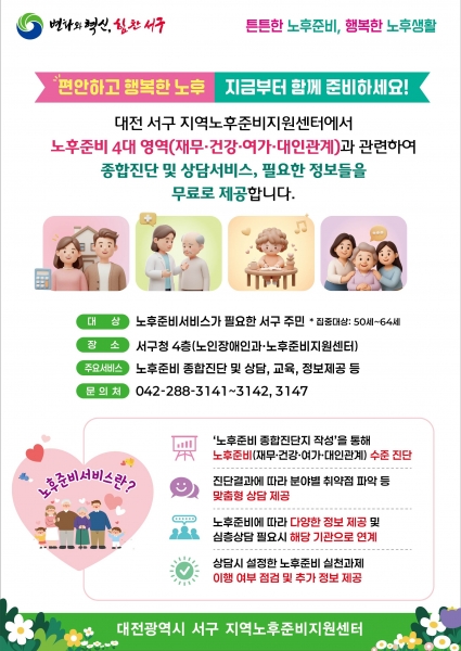 [Ytv영상스토리] 대전 서구 지역노후 준비지원센터는 오는 6월부터 신중년을 대상으로 노후 준비 컨설팅 사업을 본격 추진한다.