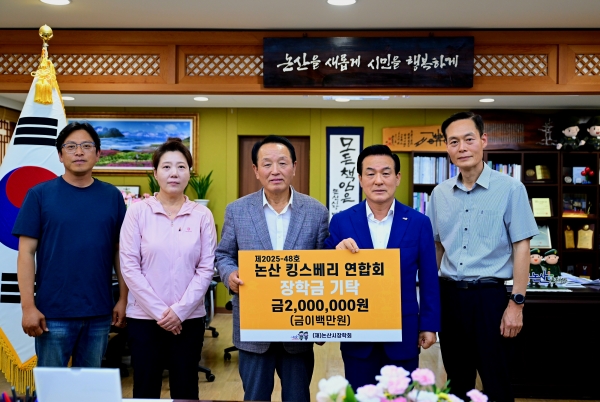 논산 킹스베리 연합회 박형규 회장은 “지역사회의 미래를 책임질 인재들에게 작은 보탬이 되고자 장학금을 기탁하게 됐다”며 앞으로도 지속적으로 지원하겠다는 약속과 함께 200만원의 장학금을 전달했다.