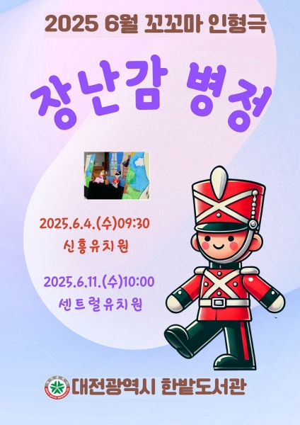 6월에는 세계 명작 동화 ‘장난감 병정’을 각색한 손인형극 공연이 동구 신흥유치원과 중구 센트럴유치원에서 열린다.
