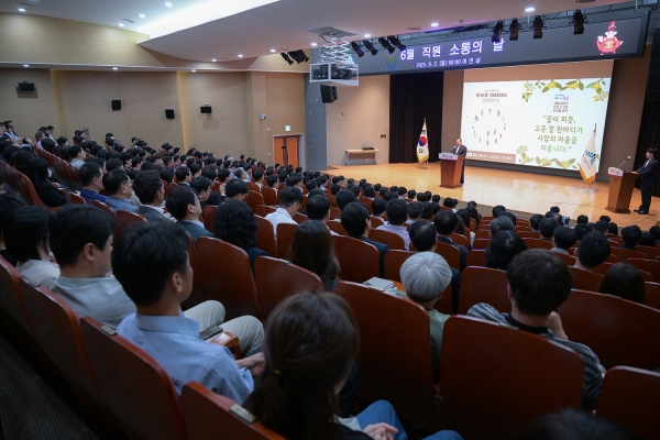 최민호 시장은 2일 시청 여민실에서 직원 300여명이 참석한 가운데 열린 6월 직원 소통의 날 행사에서 공화국이 시작된 역사를 통해 투표의 가치를 설명하고 직원들에게 투표 참여를 독려했다.