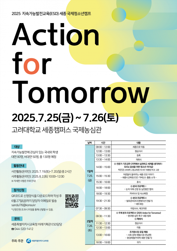 [Ytv영상스토리] 세종시교육청은 청소년들이 환경·사회·경제적 지속가능성의 중요성을 인식하고 세상과 소통하며 연대할 수 있도록 기회를 제공하기 위해 ‘2025 지속가능발전교육 세종 국제청소년캠프 Action for Tomorrow’를 운영한다고 밝혔다.