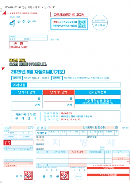 금산군, 노년층·시력 약자 배려 모든 세목 큰 글씨 고지서 시행