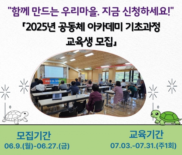 [Ytv영상스토리] 홍성군 마을만들기지원센터는 2025년 공동체 아카데미 기초과정 교육에 함께할 참여자를 모집한다.