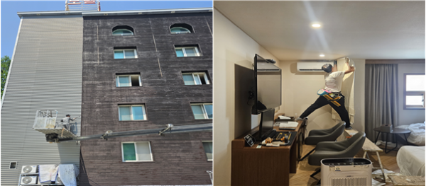 지원 내용은 △객실 도배·장판 교체 △객실바닥 온열매트 설치 △건물 외벽 페인트 작업 △주차장 아스콘 포장 등으로 숙박업소 내·외부 시설을 개선해 이용객의 만족도와 위생 수준을 동시에 높였다.