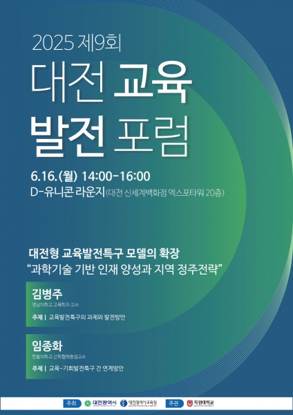 고현덕 대전시 교육정책전략국장은 “이번 포럼은 대전이 교육발전특구로서의 정체성과 전략적 위상을 강화하는 계기가 될 것”이라며 “앞으로도 교육, 산업, 지역이 함께 성장하는 지속가능한 교육생태계 조성을 위해 실천 중심의 정책 협력을 이어가겠다”고 말했다.