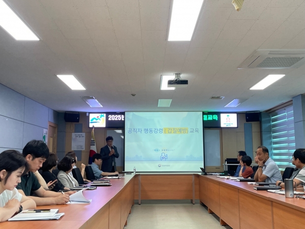 강의는 이항노 국민권익위원회 행동강령과장이 맡아 ‘공직자 행동강령과 청렴 실천’ 이라는 주제로 공직자가 반드시 준수해야 할 청렴 기준과 행동강령의 핵심 내용을 상세히 설명하고 갑질 예방과 민원 대응 시 유의할 사항에 대해 실제 사례 중심으로 안내했다.