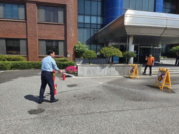 [Ytv영상스토리] 아산교육지원청은 6월 11일 수요일 10시부터 전직원을 대상으로 청사 중앙 현관 앞 주차장에서 2025년 상반기 자체소방훈련을 실시했다.