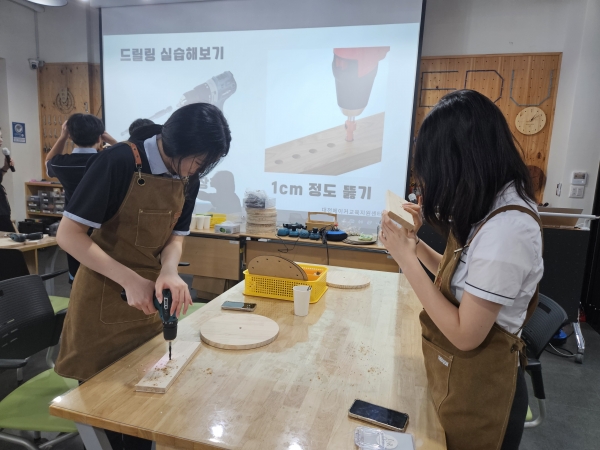 프로그램 주제는 ‘생성형 AI를 활용한 나만의 시계 만들기’로 목공을 활용한 시계 메이킹 활동 후, 생성형 AI 프로그램으로 만든 자신만의 그림이나 문자를 레이저 가공으로 각인하는 체험으로 이루어진다.