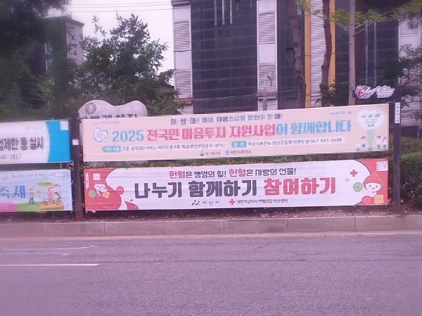 한편 헌혈 장려 현수막은 ‘헌혈은 생명의 힘 헌혈은 사랑의 선물 나누기 함께하기 참여하기’를 주제로 아고오거리, 배방삼거리, 권곡초 맞은편, 용연로 사거리, 터미널사거리 등 9개소에 게시됐다.