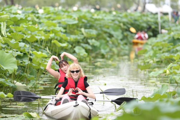 ‘연지 카누 체험’은 연꽃이 피어 있는 궁남지 위에서 카누를 타며 연못의 풍경을 감상할 수 있는 색다른 경험을 제공한다.