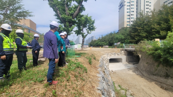 시공상태, 배수시설 기능 및 공정 진행 상황 등을 세밀하게 확인하고 현장 관계자들을 대상으로 근로자들의 폭염 대비 안전 관리와 신속한 공정 마무리를 요청했다.