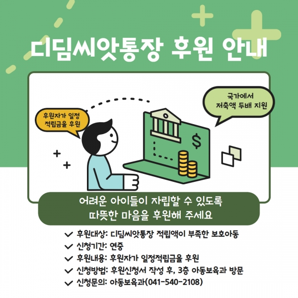 아산시, 디딤씨앗통장 대상 확대 및 후원 모집