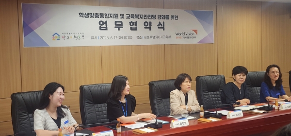 [Ytv영상스토리] 세종시교육청학교지원본부와 월드비전 대전세종충남사업본부는 6월 17일 10시에 세종시교육청에서 학생맞춤통합지원 및 교육복지안전망 강화를 위한 업무협약을 체결했다.