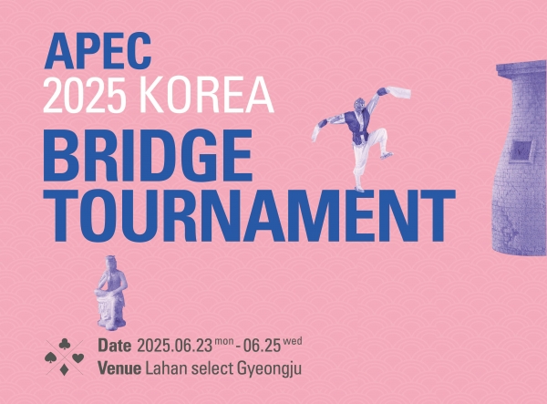 한편 ‘2025 APEC 정상회의’의 성공적인 개최를 기원하며 마련된 'APEC 2025 KOREA 브리지 토너먼트'가 오는 6월 23일부터 25일까지 경상북도 경주 라한 셀렉트 호텔에서 개최된다.