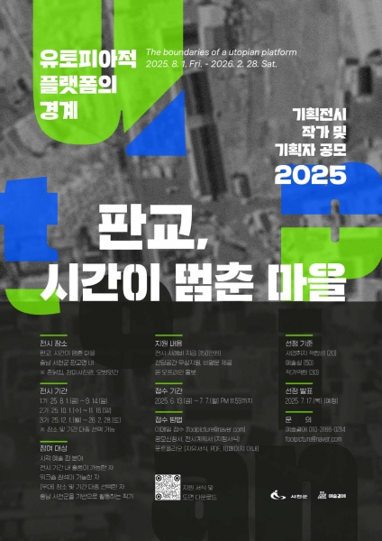 선정된 작가는 오는 8월 1일부터 판교 근대역사문화공간 일대인 장미사진관, 삼화정미소, 촌닭집 등 등록문화재 공간에서 전시를 진행하게 된다.