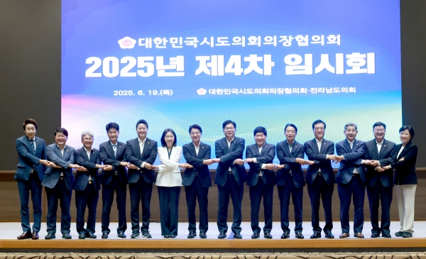 조원휘 의장은 19일 전라남도의회 주관으로 여수소노캄호텔에서 열린 2025년 대한민국시도의회의장협의회 제4차 임시회에 참석해 상정된 안건을 처리하고 현안사항 등을 협의했다.
