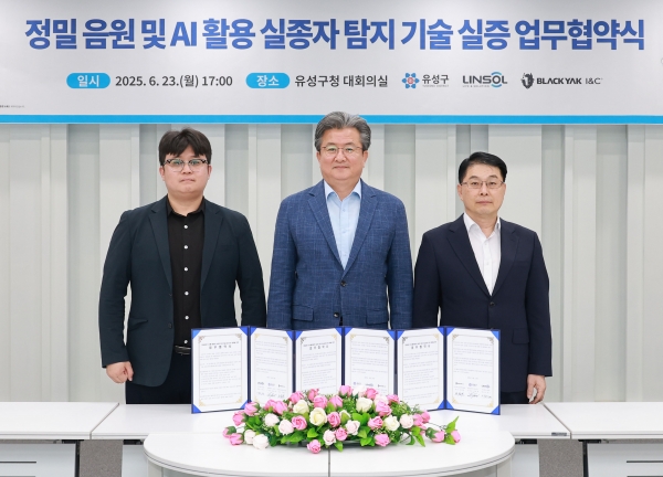 [Ytv영상스토리] 대전 유성구는 지난 23일 ㈜린솔·㈜블랙야크I&C와 ‘정밀 음원·AI 활용 실종자 탐지 기술 실증’ 업무 협약을 체결했다.