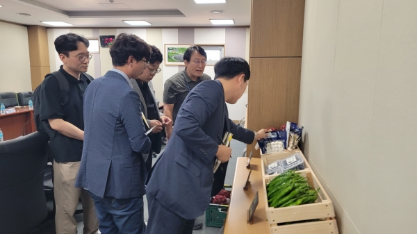 이들은 공주시 대표 농산물인 밤, 오이, 토마토, 고추 등을 소개하고 산지 유통 시설을 통한 철저한 선별과 안정적인 공급 체계를 강조하며 유통업체의 관심을 끌었다.
