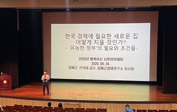 [Ytv영상스토리] 아산시가 24일 평생학습관 아산아트홀에서 행복아산 시민아카데미 두 번째 강연으로 최배근 경제학 교수의 ‘한국 경제에 필요한 새로운 집, 어떻게 지을 것인가?’ 특강을 진행했다.