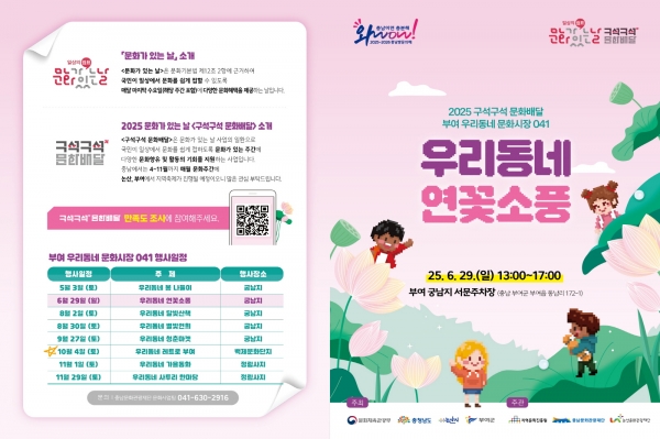 [Ytv영상스토리] 부여군은 오는 29일 일요일 오후 1시부터 5시까지 궁남지 서문 주차장에서 ‘2025 문화가 있는 날 구석구석 문화배달’ 2회차 행사를 개최한다.