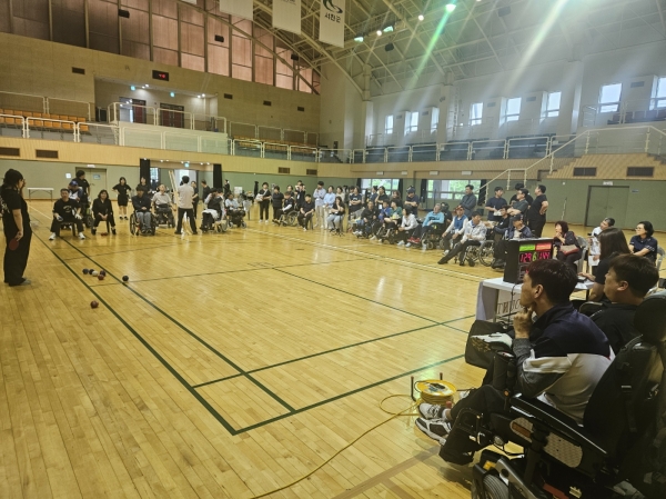 보치아는 가죽 공을 던지거나 굴려 표적구에 얼마나 가까이 도달하는지를 겨루는 종목으로 집중력과 정밀한 조준이 요구되는 장애인 스포츠이다.