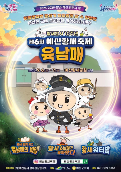 [Ytv영상스토리] 예산군은 오는 9월 6일부터 7일까지 이틀간 예산황새공원 일원에서 열리는 ‘2025년 제6회 예산 황새축제’의 민간 주관단체로 예산황새생태관광협의회를 최종 선정했다고 밝혔다.