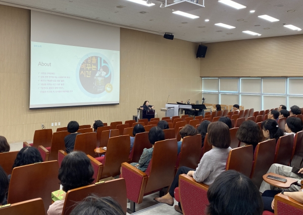 이후 연수 강사로 초빙된 다양성공감교육센터 이진영 대표는 ‘더불어 행복한 세상 만들기’라는 주제로 강연을 진행했다.
