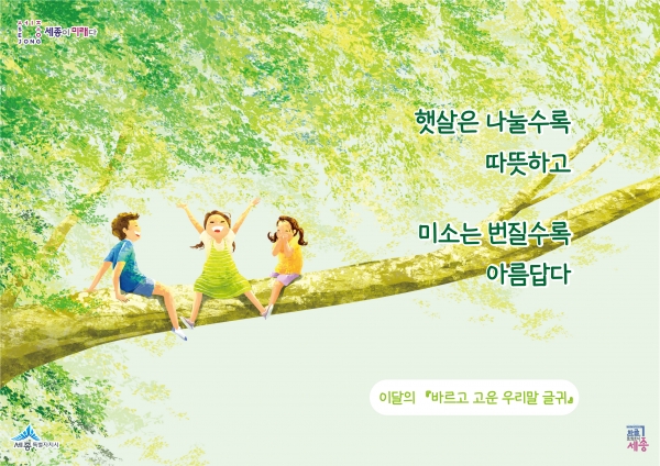 한편 세종시는 한글문화도시 사업 추진 원년과 전국 최초·유일의 한글문화도시과 신설을 기념해 올해 3월부터 격월로 ‘바르고 고운 우리말’을 선정해 시민들에게 홍보하고 있다.