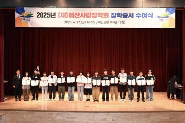 [Ytv영상스토리] 예산군은 지난 6월 27일 군청 추사홀에서 예산사랑장학회가 2025년도 장학생 장학증서 수여식을 개최하고 관내외 중·고등학생 및 대학생 총 250명에게 장학증서를 전달했다고 1일 밝혔다.