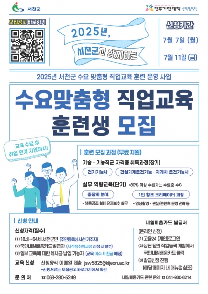 서천군, 수요 맞춤형 직업교육 훈련 운영 참여자 모집