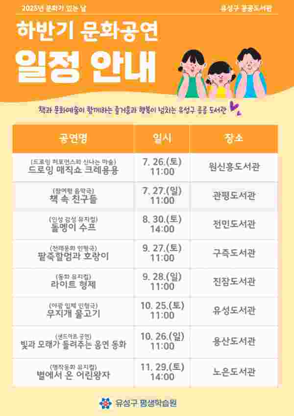 유성구, 8개 공공도서관에서 펼쳐지는 문화 공연