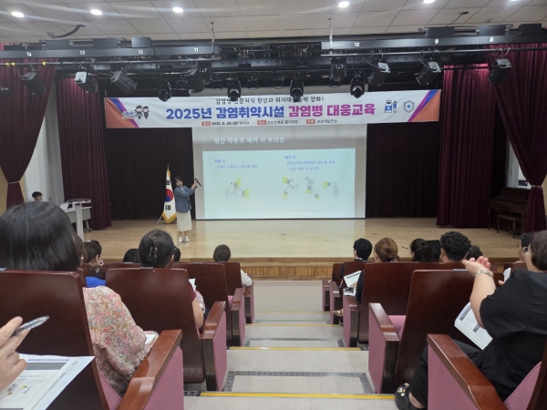 이날 교육에서는 △표준주의, 손위생, 개인보호구, 소독, 환경관리 등 감염취약시설의 감염관리 방법 및 우수사례 공유 △CRE 감염관리 방안 △감염취약시설 대상 현장컨설팅 사업 안내 등의 내용이 진행됐으며 강의는 건양대학교 간호학과 이미향 교수가 맡아 실제 사례와 현장 중심의 감염관리 지침을 통해 실무에 도움이 되는 정보를 전달했다.