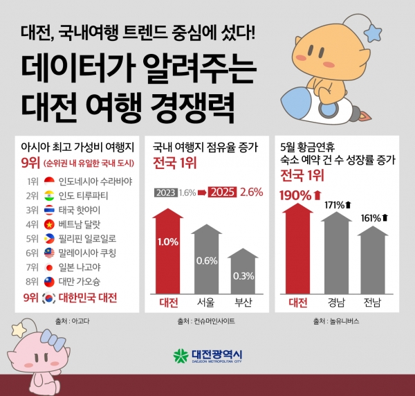 대전시가 2025년 아시아에서 가장 합리적인 여행이 가능한 도시 중 하나로 선정됐다.