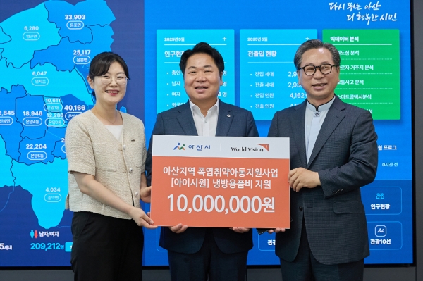 [Ytv영상스토리] 아산시는 3일 월드비전 대전세종충남사업본부로부터 관내 취약계층 아동을 위한 1천만원 상당의 냉방용품과 냉방비를 전달받았다고 밝혔다.