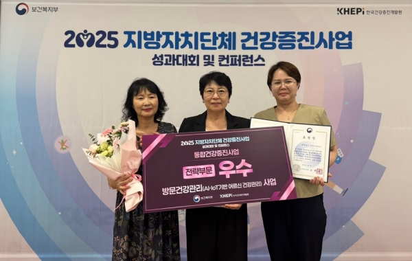 특히 방문건강관리와 AI·IoT어르신 건강관리사업을 연계한 통합서비스 모형을 적용해 취약계층 대상의 어르신이 스마트폰을 활용한 자가건강 측정과 미션 참여를 유도해 만성질환의 건강지표가 개선된 점이 이번 성과를 이끌었다.