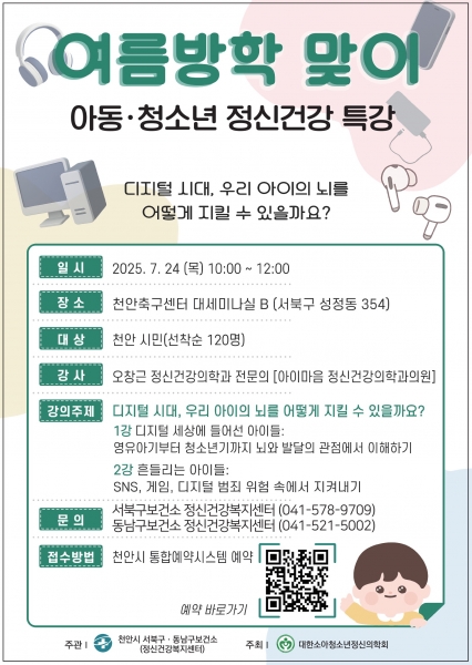 천안시, 여름방학 맞아 아동·청소년 정신건강 특강 개최