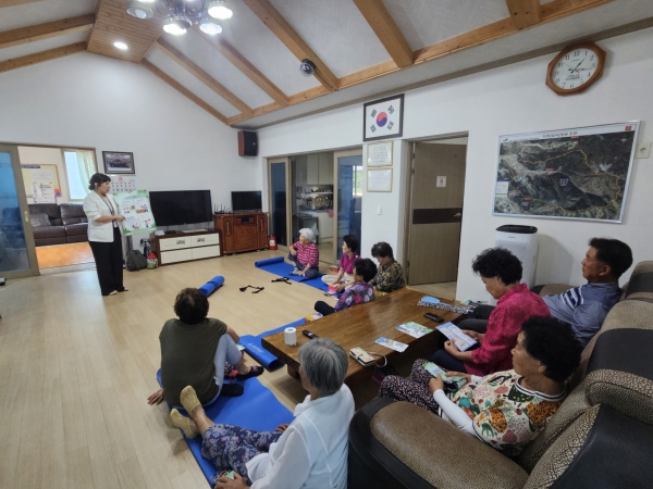 보건소는 6월부터 관내 경로당과 마을회관을 순회하며 어르신 눈높이에 맞춘 폭염 대비 건강수칙 교육을 실시하고 있다.