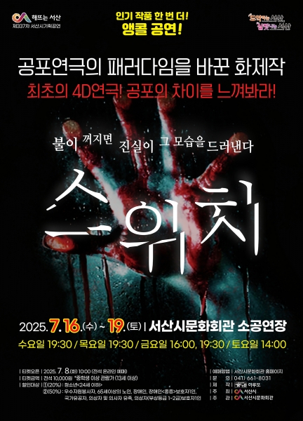 대학로 스테디셀러인 ‘스위치’는 지난 2023년 서산시 개최 당시 티켓 예매 시작 3분 만에 매진을 기록한 인기 작품이다.