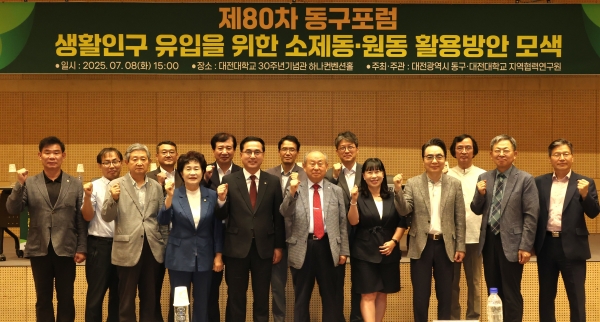 박희조 동구청장은 “이번 포럼은 지방소멸 위기 속에서 대전역과 중앙시장 등 핵심 인프라와 소제동·원동의 고유한 지역 자산을 활용해, 생활인구 유입과 지역 경제 활성화를 모색하는 뜻깊은 자리였다”며 “앞으로도 민·관·학이 함께 머리를 맞대고 지속 가능한 동구의 미래 전략을 고민해 나가겠다” 한편 동구포럼은 1999년 처음 시작돼 올해로 80회째를 맞이했으며 민·관·학 협력 체계를 바탕으로 지역 현안에 대한 공감대를 형성하고 다양한 의견을 수렴하는 토론의 장으로 자리매김하고 있다.