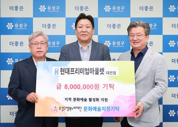 이번 후원금은 유성구의 문화예술도시 조성을 위해 유성구행복누리재단 문화부가 추진하는 문화 사업에 활용될 예정이다.