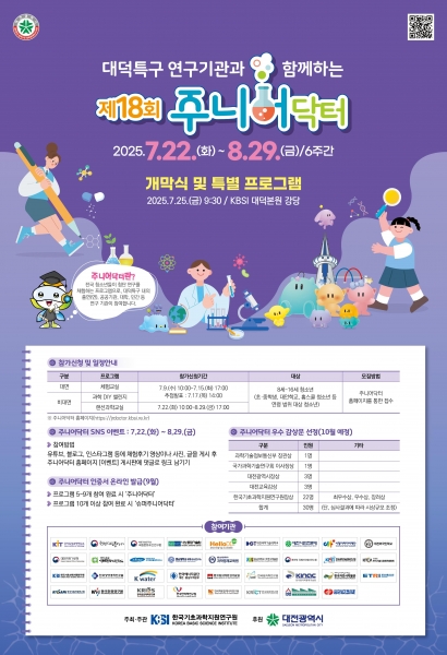 대전시가 주최하고 한국기초과학지원연구원이 주관하는 ‘주니어닥터 프로그램’은 청소년들이 대덕연구개발특구 내 출연연, 대학, 공공기관, 민간기관 등 총 35개 참여기관에서 과학기술 인프라를 체험하며 과학자의 꿈을 키울 수 있도록 지원하는 여름방학 과학 체험 프로그램이다.