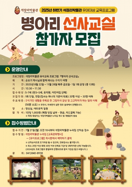 [Ytv영상스토리] 공주시는 오는 8월 22일부터 11월 28일까지 석장리박물관에서 매주 금요일 ‘하반기 병아리 선사 교실’을 운영한다.