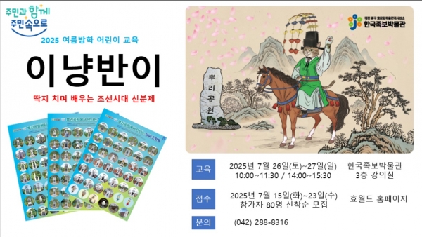 한국족보박물관, 여름방학 어린이 교육프로그램‘이냥반이’ 운영