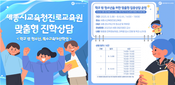 또한, 8월 5일부터 8일까지 총 4일간 ‘특수교육대상학생 및 학교 밖 청소년을 위한 맞춤형 집중 진학 상담 프로그램’도 별도로 운영할 계획이다.